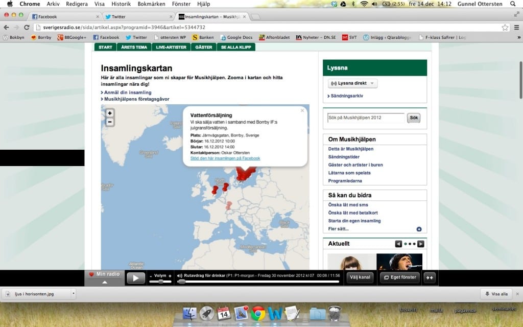 Precis som vanligt säljer Borrby IF julgranar vid ICA. I år har de till och med slagit upp ett tält där vi i lugn och ro kan välja gran. På söndag finns ytterligare ett inslag bland granarna. Förhoppningsvis har alla uppmärksammat att det på ett torg i Malmö pågår en insamling (Musikhjälpen) för att barn i slummen skall få rent vatten – något vi här hemma tar för givet. På söndag kan vi i Borrby delta i insamlingen genom att ”betala dyrt” för ett glas vatten. Nu kan vi visa att vi bryr oss om hur barn i världen har det!